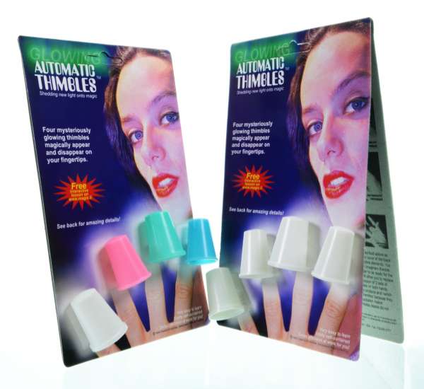 AUTOMATIC THIMBLES FOR NIGHTTIME MAGIC4 mysteriously glowing thimbles appear and vanish on your fingertips. Impressive night time street m... |