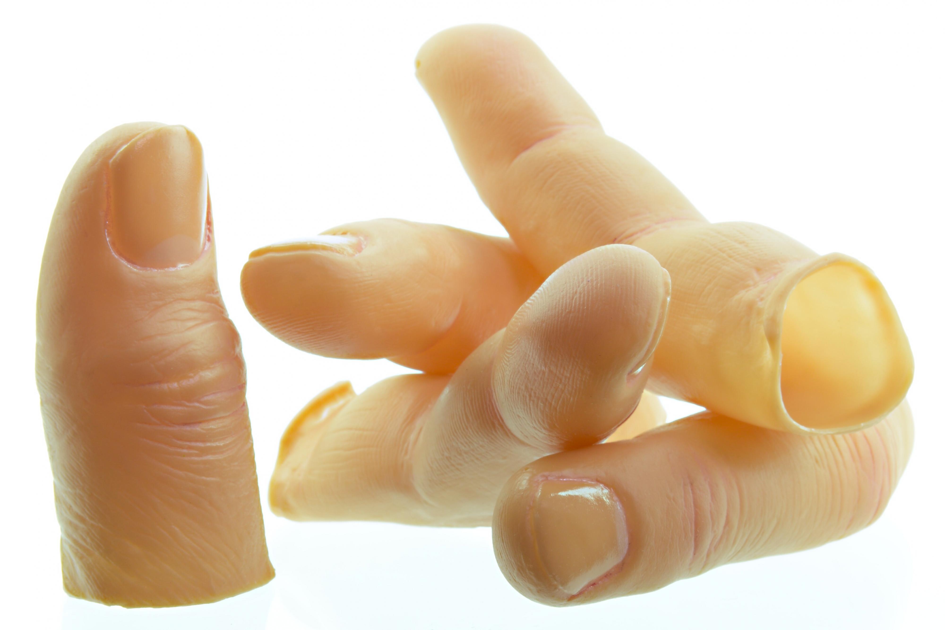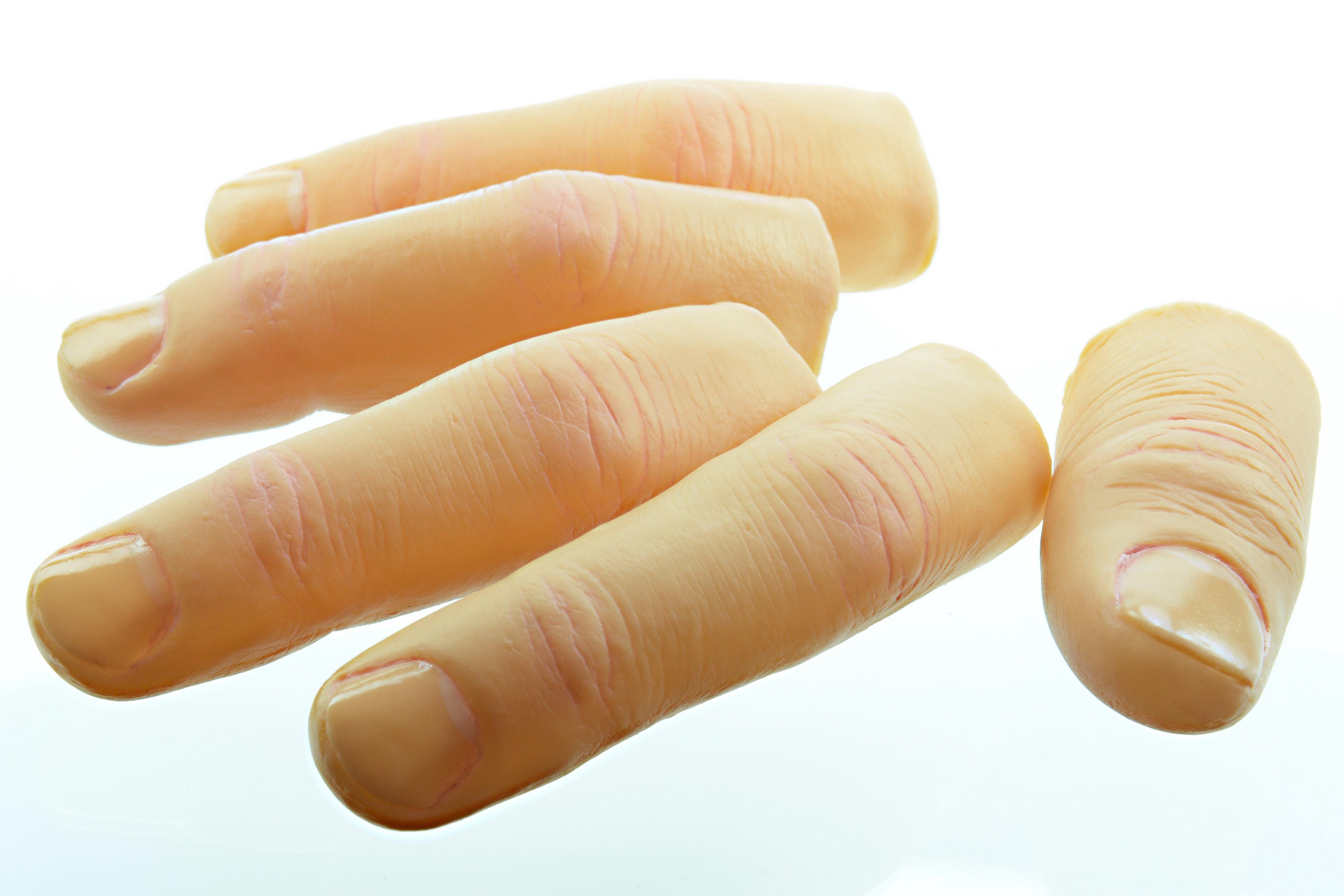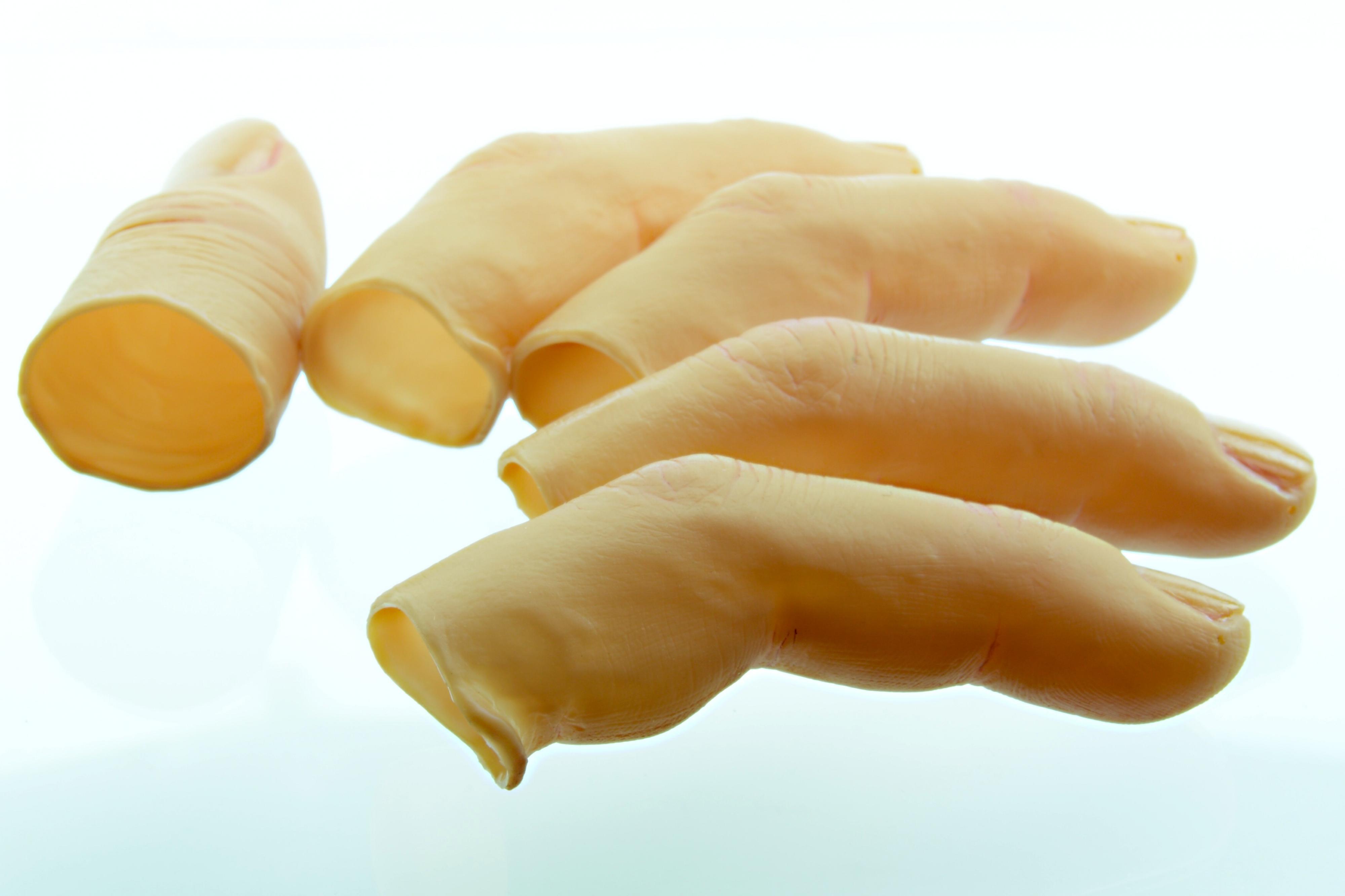 This kit contains our award-winning finger prosthetics as a set for one hand. It's perfect for film shoots in which an entire hand needs to falsify fingerprints.