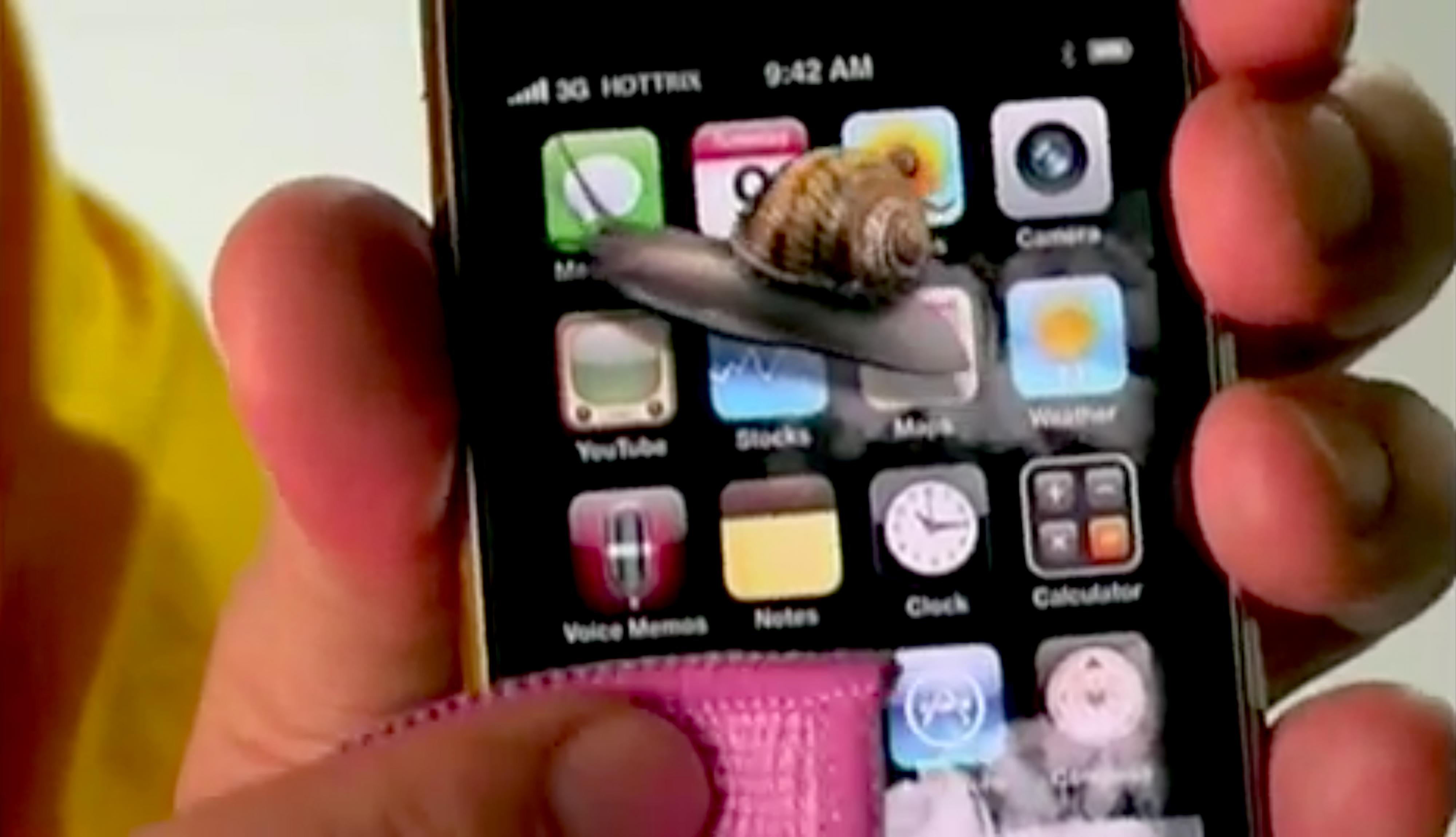 A Hottrix classic, released before the app store even existed. It's a simulated app: A short and devastatingly convincing video you play on your iPhone to produce realistic lifelike simulation effects that are not possible with programmed apps.