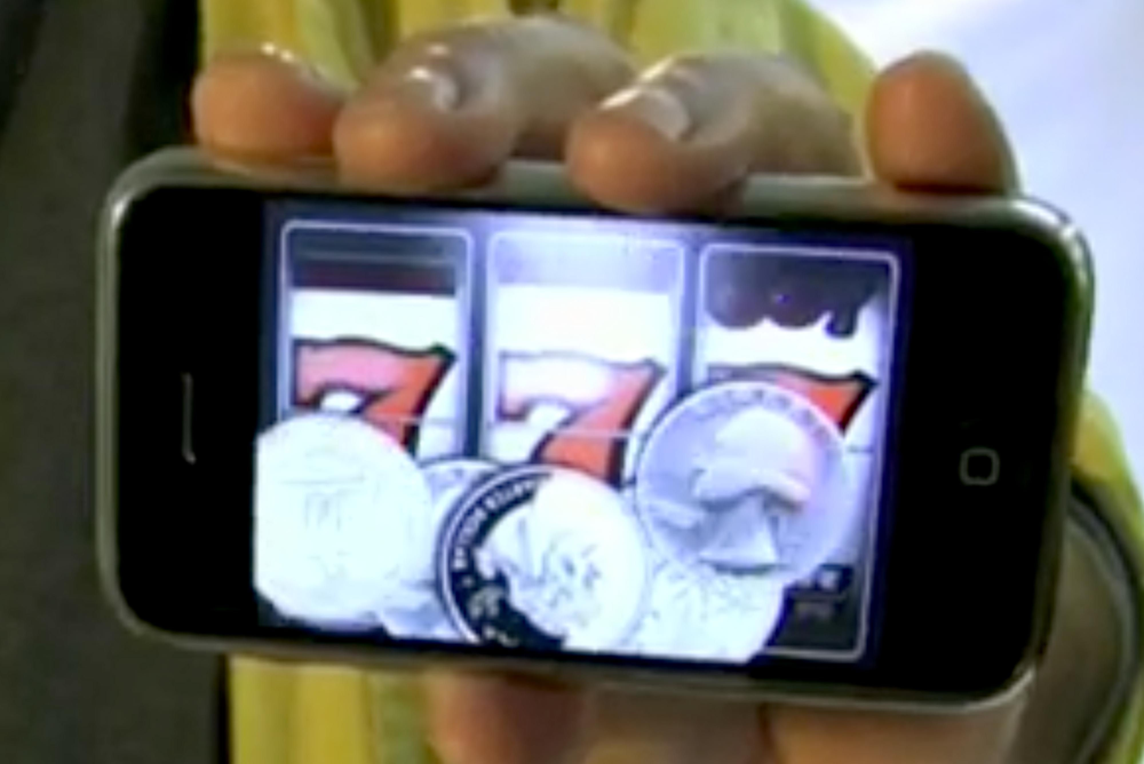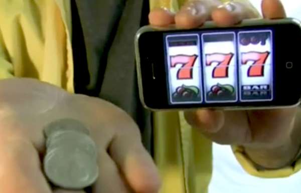 Pretend your iPhone turns into a Las Vegas slot machine. After 2 tries you strike it big and win the house. Coins drop onto screen and you pour them into your hand. Easy money.